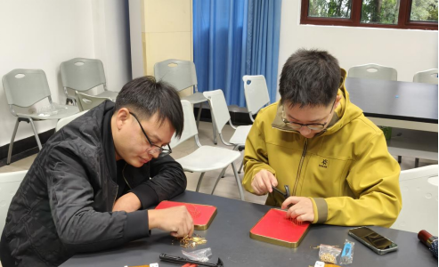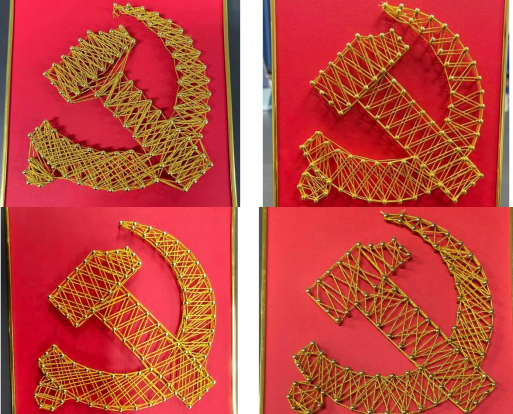 在“巧手钉绘爱国情,同心共筑中国梦”手工实践环节,党员们以钉子绕线画为媒,亲手编织对祖国的深情祝福。一钉一线中凝聚对革命先辈的追思,千针万线里寄托强国复兴的青春誓言,大家在协作中深化情感认同,在实践中体悟责任担当。