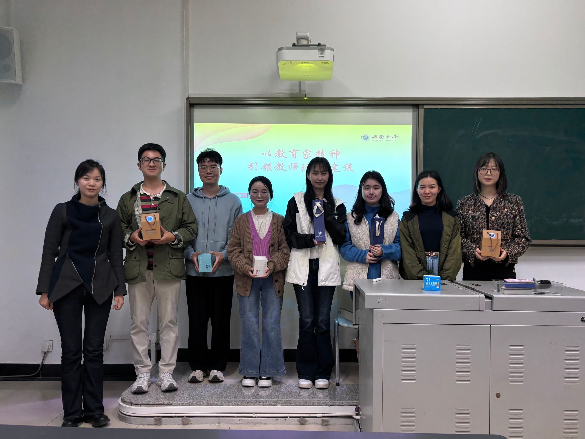 为深入学习贯彻习近平总书记关于大力弘扬教育家精神的重要指示精神,深刻把握教育家精神的时代内涵与实践要求,激发全体党员教师对标先进、锤炼内功的积极性与创造力,教师教育学院研究生二支部于2026年3月13日下午3时,在师元楼102教室举办“教育家精神”主题微党课比赛。活动旨在引导党员同志将“心有大我、至诚报国”的理想信念融入教育教学全过程,以实际行动为培养担当民族复兴大任的时代新人贡献力量。本次比赛由党支部宣传委员周杜易同志主持,支部20名党员担任评委,支部全体党员及入党积极分子共26人参加活动。