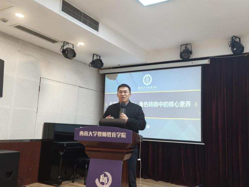 在培训环节,西南大学附属中学来泽老师围绕“从校园到讲台的角色转换”分享教学与科技教育经验。