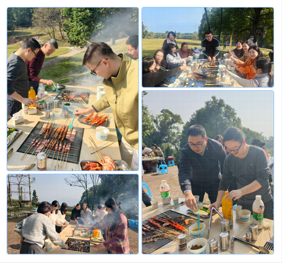 活动在轻松愉快的氛围中拉开序幕。中午,教职工们齐聚学院门口,统一乘车前往目的地。抵达环境清幽的苓珑苑后,大家迅速投入到集体烧烤环节中。炊烟袅袅,香气四溢,老师们分工协作,默契配合,有的备料串制,有的精心烤制,现场笑语不断,气氛热烈,在协作中进一步增进了彼此的情谊。
