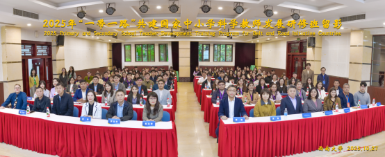 10月27日上,2025年“一带一路”共建国家中小学科学教师培训项目开班仪式,在西南大学教师教育学院师元讲堂召开。西南大学副校长赵玉芳,教师教育学院院长罗生全、副院长杨挺,国际合作与交流处副处长周炼,国际学院副院长胡琳,及东盟教师专业发展研究院副教授Phongthanat Sae-joo、泰国孔敬大学教育学院国际中文系系主任Narueporn Wuttiphan、副教授Jiradawan Huntula等领导嘉宾出席会议,培训项目带队教师及参训学员列席会议。本次会议由杨挺主持。