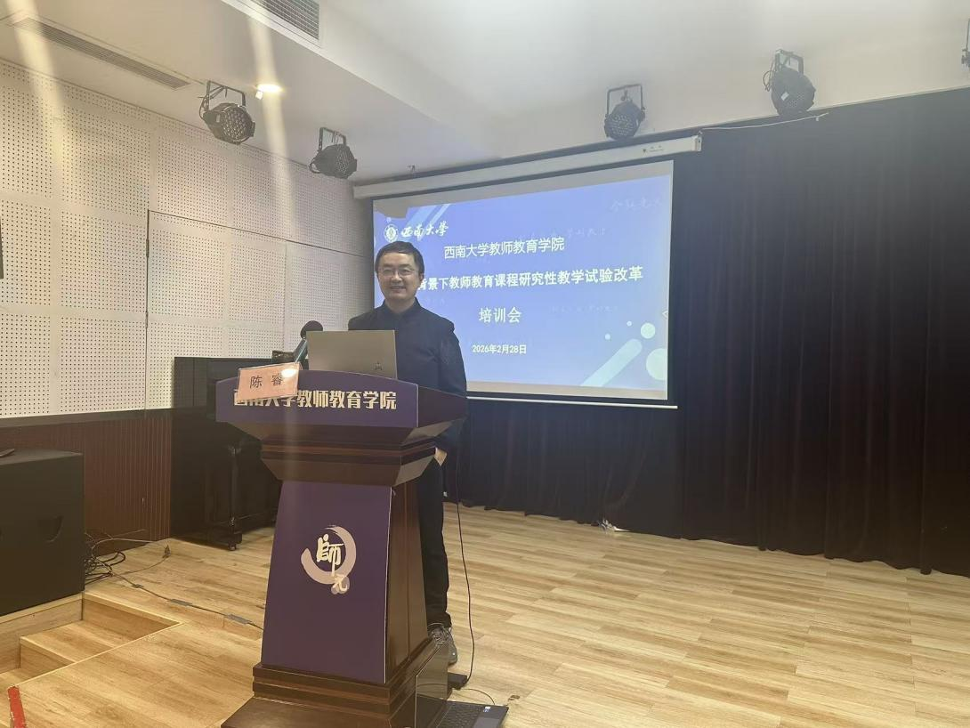 为深入推进"数字化背景下教师教育课程研究性教学实验改革",切实提升我院教师的数字化教学能力,2026年2月28日下午,学院在师元讲堂举办题为"扣子智能体开发案例分析及操作"的专题培训。本次培训特邀计算机与信息科学学院陈睿老师担任主讲,由教师教育学院副院长张正严主持。