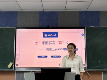皇甫倩老师聚焦国际学术论文写作与投稿的全流程,为在场师生拆解了SSCI论文的写作规范、进阶逻辑与投稿技巧,帮助大家打破国际论文写作的认知壁垒,掌握接轨国际评价标准的实用方法。