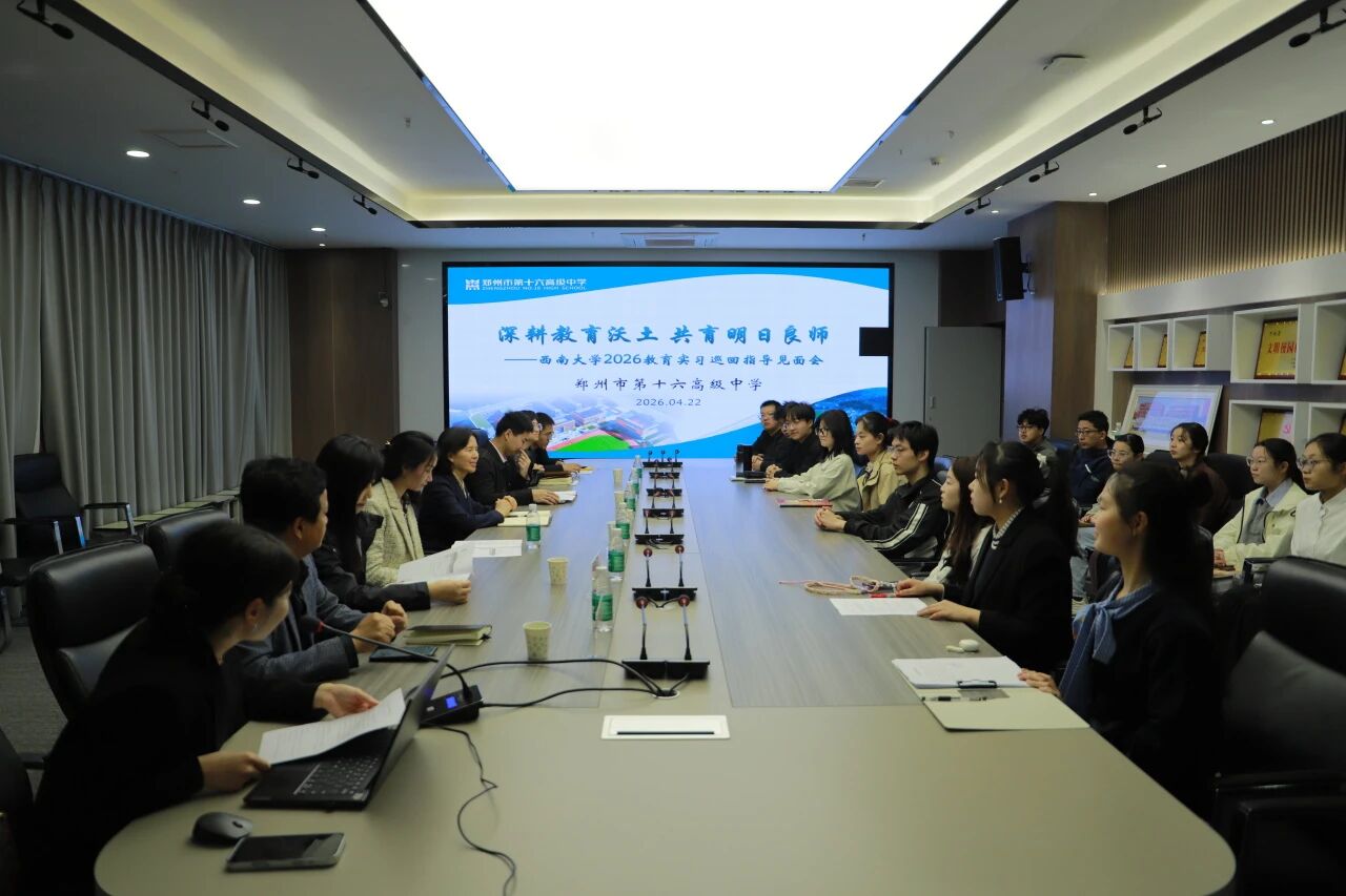 本次教育实习巡回指导全面检验了实习成效,推动了高校与实习基地的深度合作。郑州市第十六高级中学作为西南大学的重要实习基地,始终秉持“守正致远,鼎新向上”的校训,为实习生提供优质实践平台。双方将继续携手,深耕教育沃土,共育明日良师,为基础教育高质量发展贡献智慧与力量。